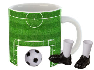 Genialny kubek kibica z piłką i butami piłkarskimi to idealny prezent dla faceta! Dzięki tym akcesoriom możesz rozegrać mini mecz w dowolnym miejscu i czasie. Fantastyczny pomysł na połączenie pasji do piłki nożnej z codziennym relaksem przy ulubionym napoju.