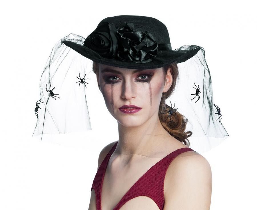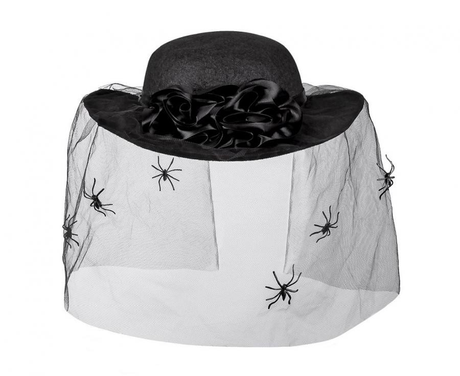 Kapelusz Pajęcza Wdowa z Welonem – Czarny Dodatek na Halloween