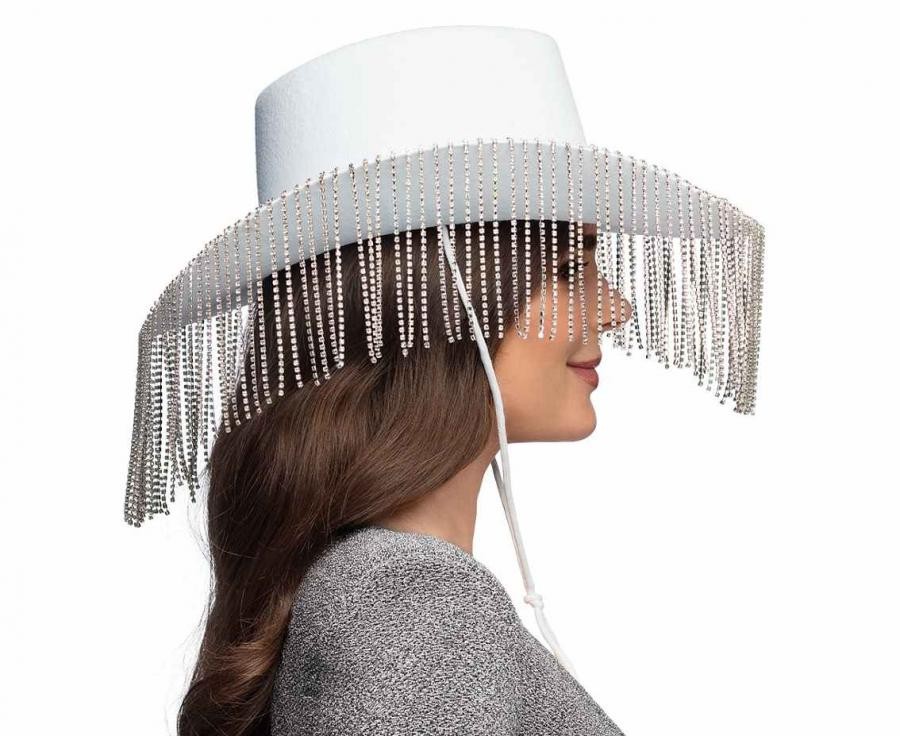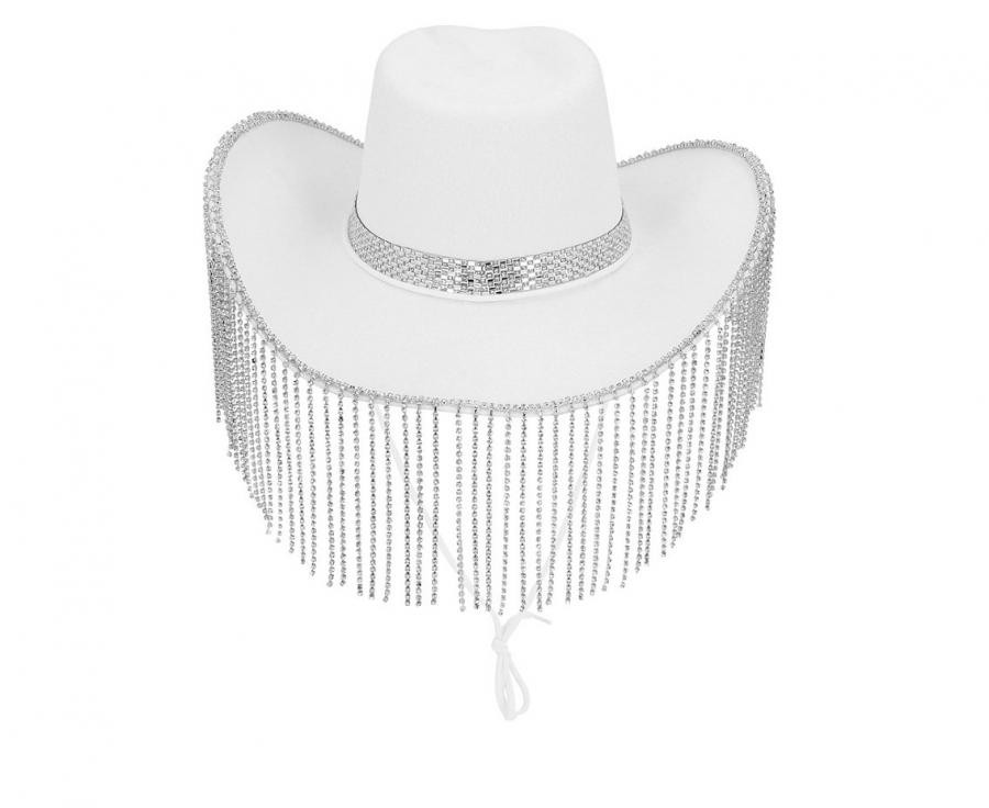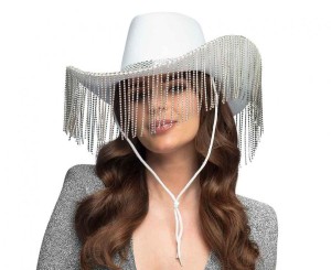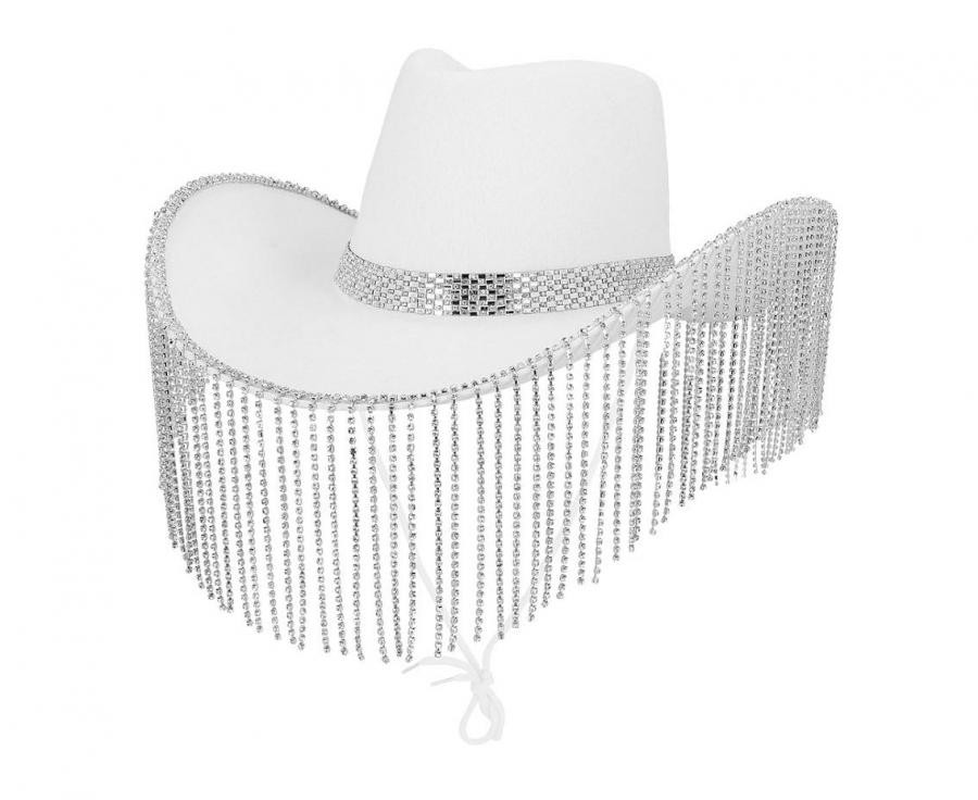 Kapelusz Show Girl biały – western, frędzle, rozmiar uniwersalny