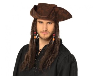 Kapelusz pirata Dirty Joe z włosami – brązowy, uniwersalny rozmiar