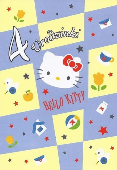 Duży kolorowy rozkładany karnet okolicznościowy z licencją Hello Kitty. Idealny do wręczenia przy ważnych okazjach. W skład zestawu wchodzi również koperta do zapakowania karnetu.