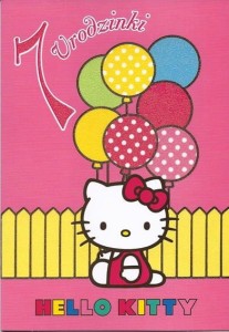 Duży kolorowy rozkładany karnet okolicznościowy z licencją Hello Kitty. Idealny do wręczenia przy ważnych okazjach. W skład zestawu wchodzi również koperta do zapakowania karnetu.