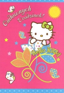 Duży kolorowy rozkładany karnet okolicznościowy z licencją Hello Kitty. Idealny do wręczenia przy ważnych okazjach. W skład zestawu wchodzi również koperta do zapakowania karnetu.