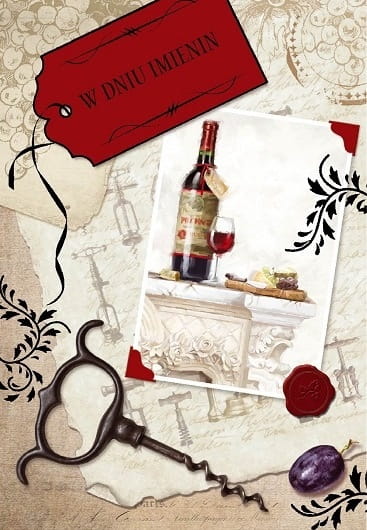 Karnet Pocztówka Imieninowy z Kopertą Wino Imieniny