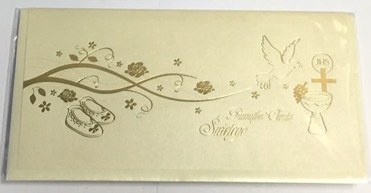 Karnet chrzest DL złoty ze złotą kopertą