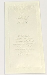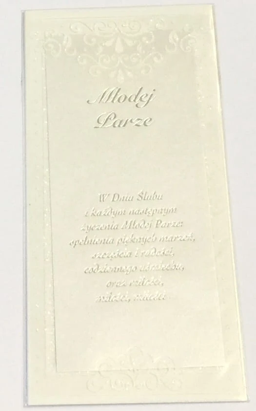 Karnet ślubny z dekoracją oraz srebrną elegancką kopertą. Karnet utrzymany w srebrno diamentowej kolorystyce, bardzo elegancki.