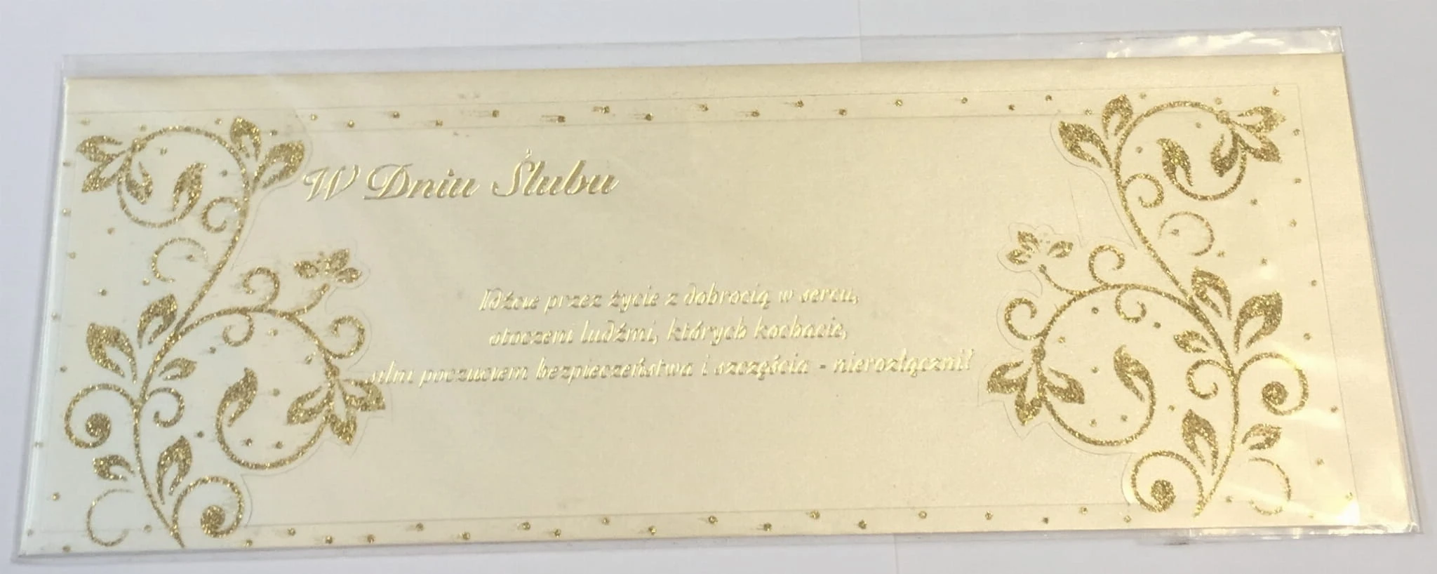 Karnet ślubny złoty z dekoracją i kopertą