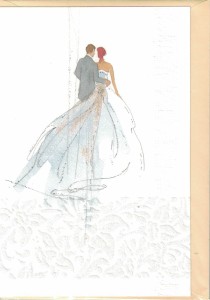 Karnet ślubny utrzymany w naturalnej kolorystyce, wygląda jak namalowany ręcznie. Karnet w zestawie z kopertą.