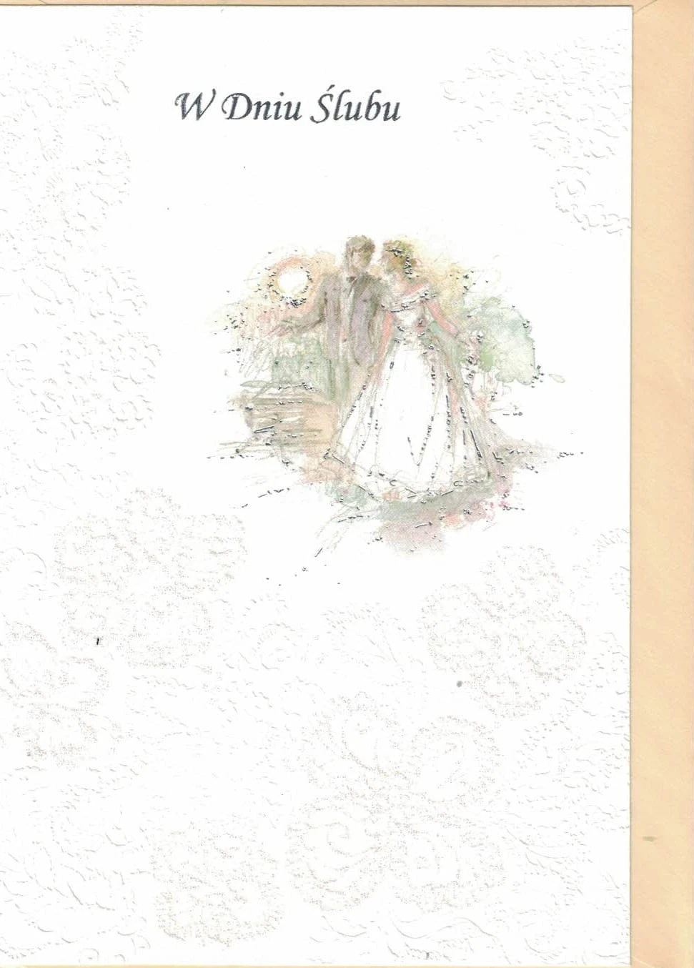 Karnet ślubny utrzymany w naturalnej kolorystyce, wygląda jak namalowany ręcznie. Karnet w zestawie z kopertą.