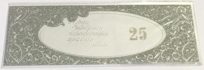 Karnet urodzinowy 25 lat srebrny z dekoracją i kopertą