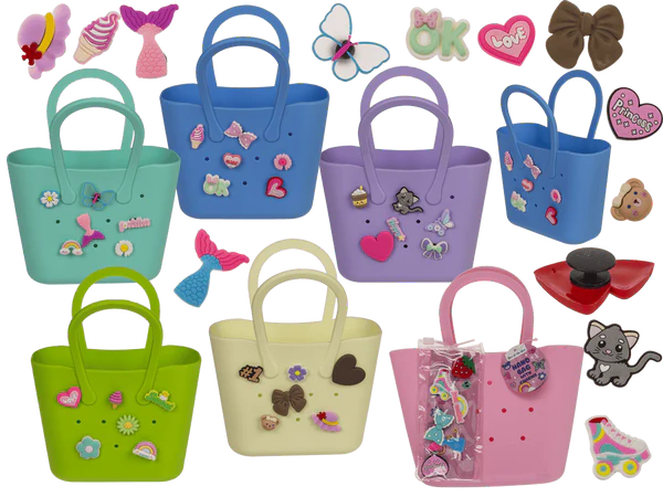 Twoje dziecko kocha modę? Silikonowa torebka z wymiennymi przypinkami to hit! Pozwala na własne projekty i kreatywną zabawę stylem. Sprawdź 6 pastelowych kolorów!