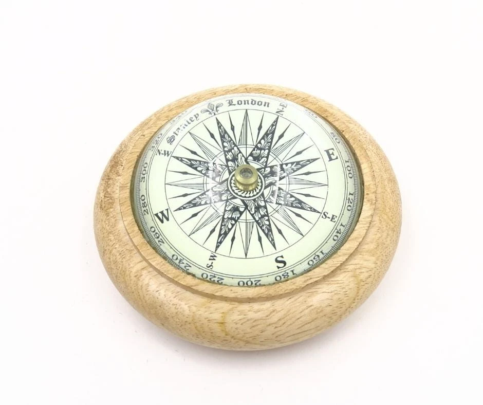 Kompas na biurko to oryginalna ozdoba w podróżniczym klimacie. Sprawdzi się jako element wystroju wnętrz marynistycznych, retro i gabinetowych. Kompas na biurko posłuży jako przycisk do papieru, dzięki któremu Twoje dokumenty nie rozlecą się po całym biurze.
