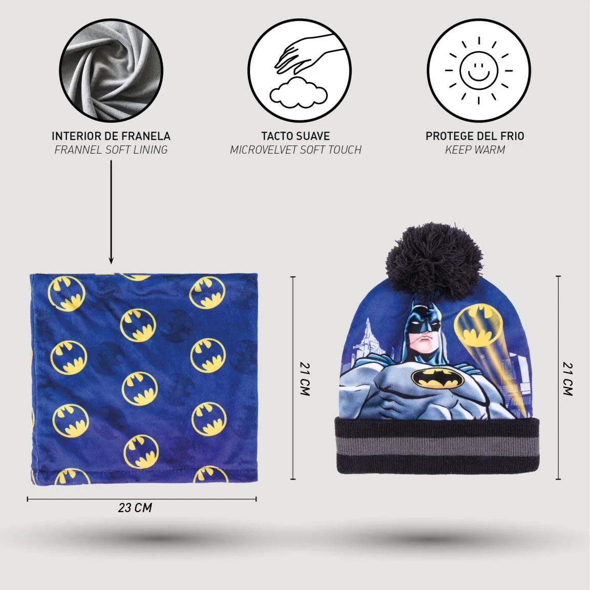 Bardzo wysokiej jakości zestaw na jesień i zimę, składający się z czapki, komina oraz rękawiczek z Batmanem. Będąc ubranym w tę czapkę można przez chwilę poczuć się jak prawdziwy superbohater. Świetnie wygląda i sprawdza się jako pomysł na prezent. Rozmiar 53 cm dedykowany dla wieku 4-8 lat.
