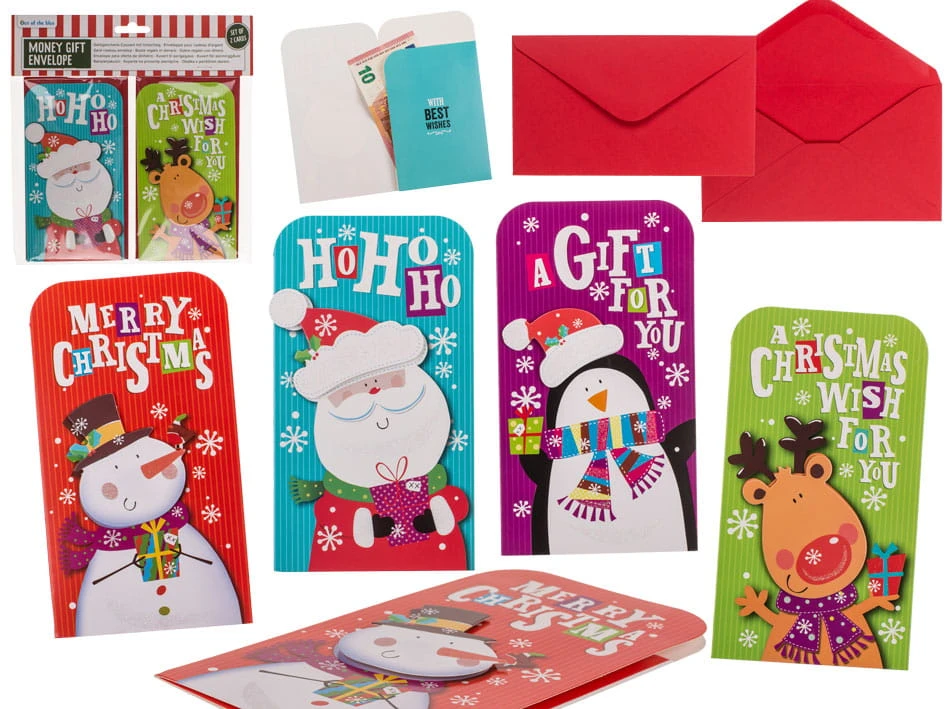 - zestaw bożonarodzeniowych kopertek prezentowych