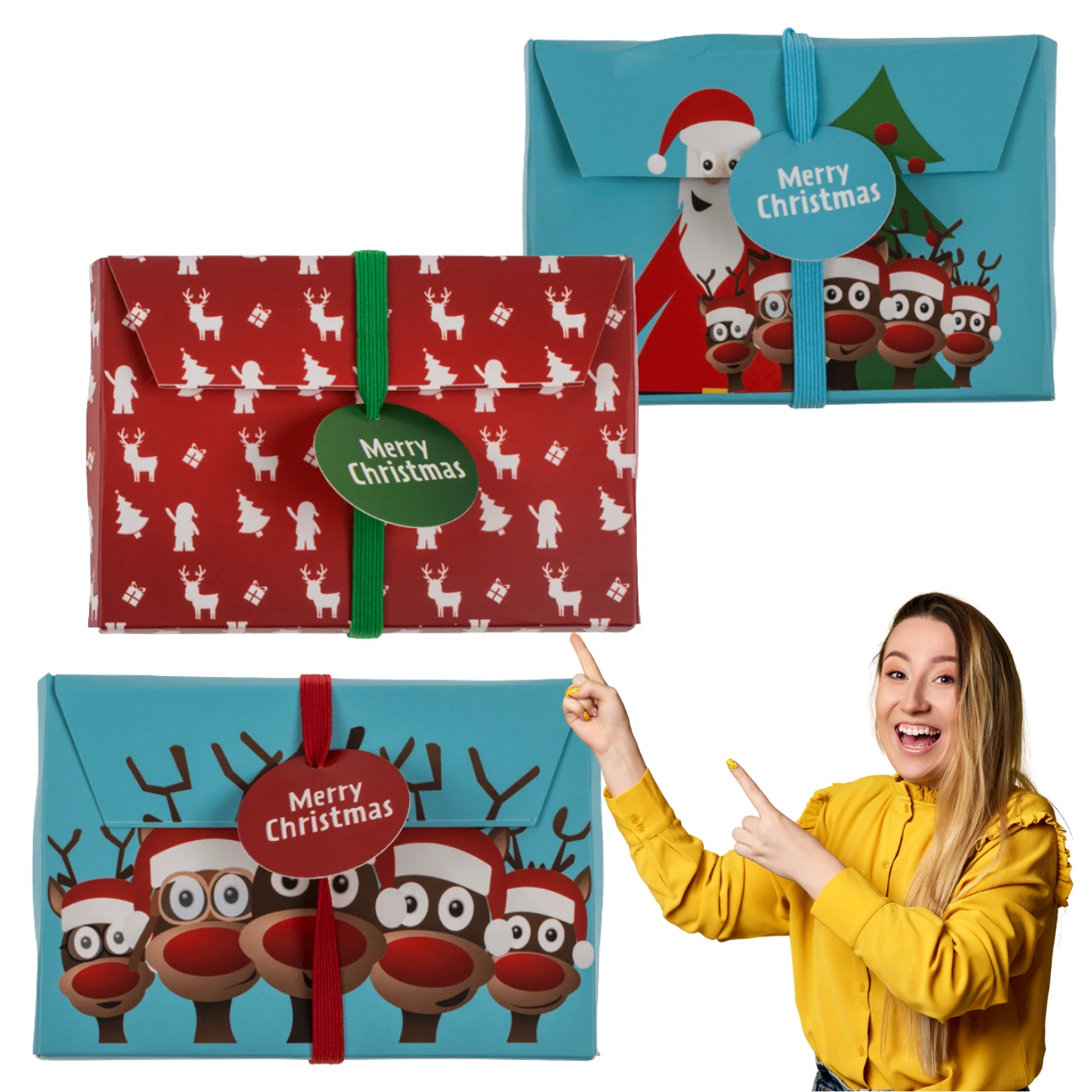KOPERTA PREZENTOWA MERRY CHRISTMAS | ZESTAW 3 SZTUK | NA PIENIĄDZE LUB KARTĘ PODARUNKOWĄ | ŚWIĄTECZNY UPOMINEK
