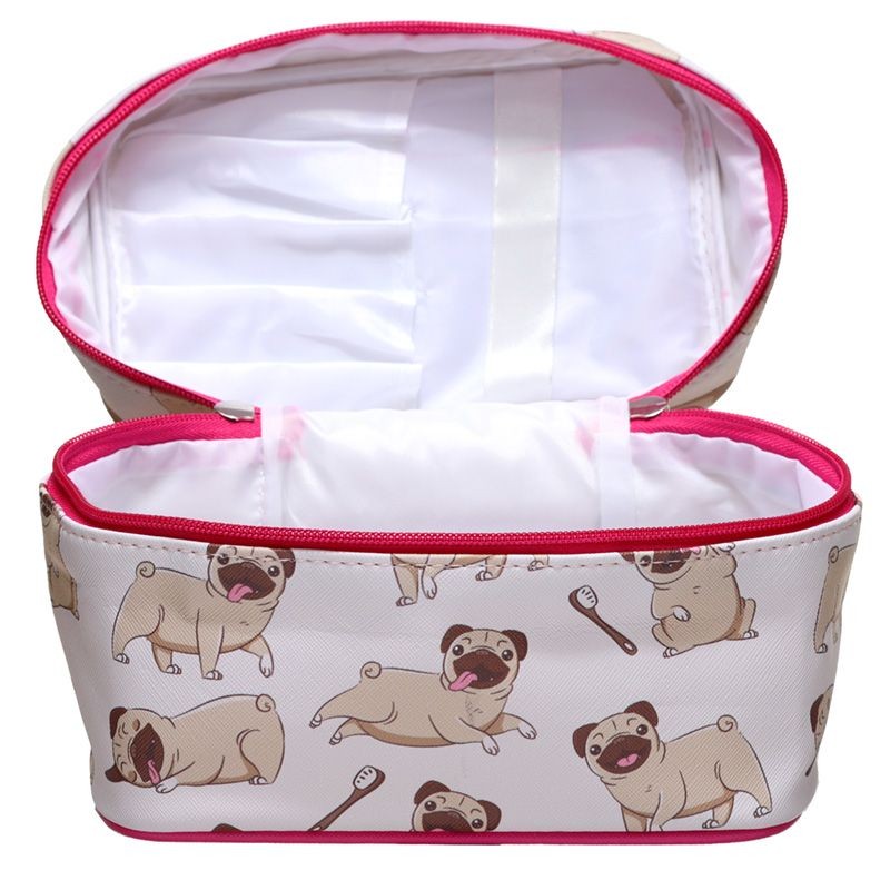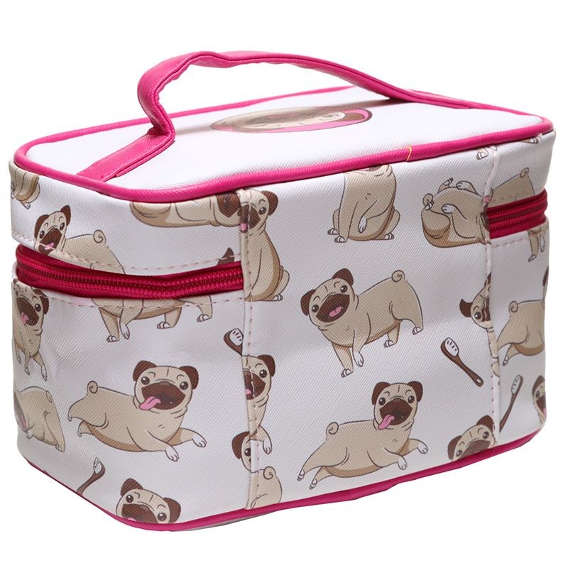 Kosmetyczka na suwak z uchwytem "Mops" to praktyczny i funkcjonalny akcesorium do przechowywania kosmetyków i innych drobiazgów. Została wykonana z wysokiej jakości materiałów, takich jak poliester i PCV, co gwarantuje jej trwałość i odporność na uszkodzenia.