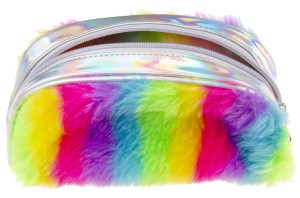 Niezwykła kosmetyczka jest ozdobiona miękkim futerkiem w odcieniach tęczy, dodającym jej wyjątkowego uroku i kolorowego blasku. Zarówno wizualnie, jak i haptycznie, zapewnia przyjemność podczas codziennego użytkowania.