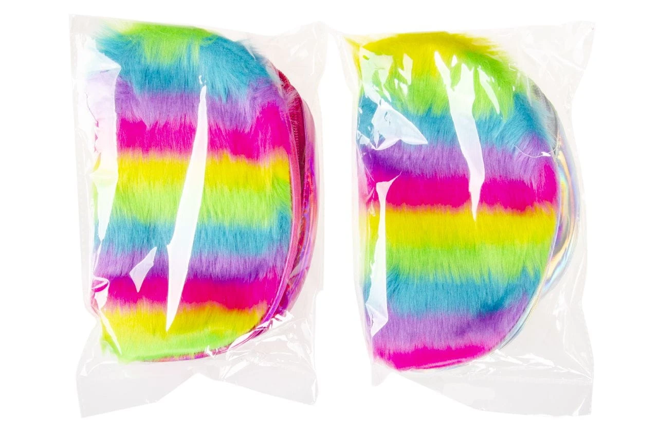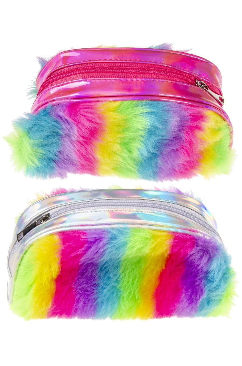 Kosmetyczka tęcza z futerkiem Kolorowa Miękka