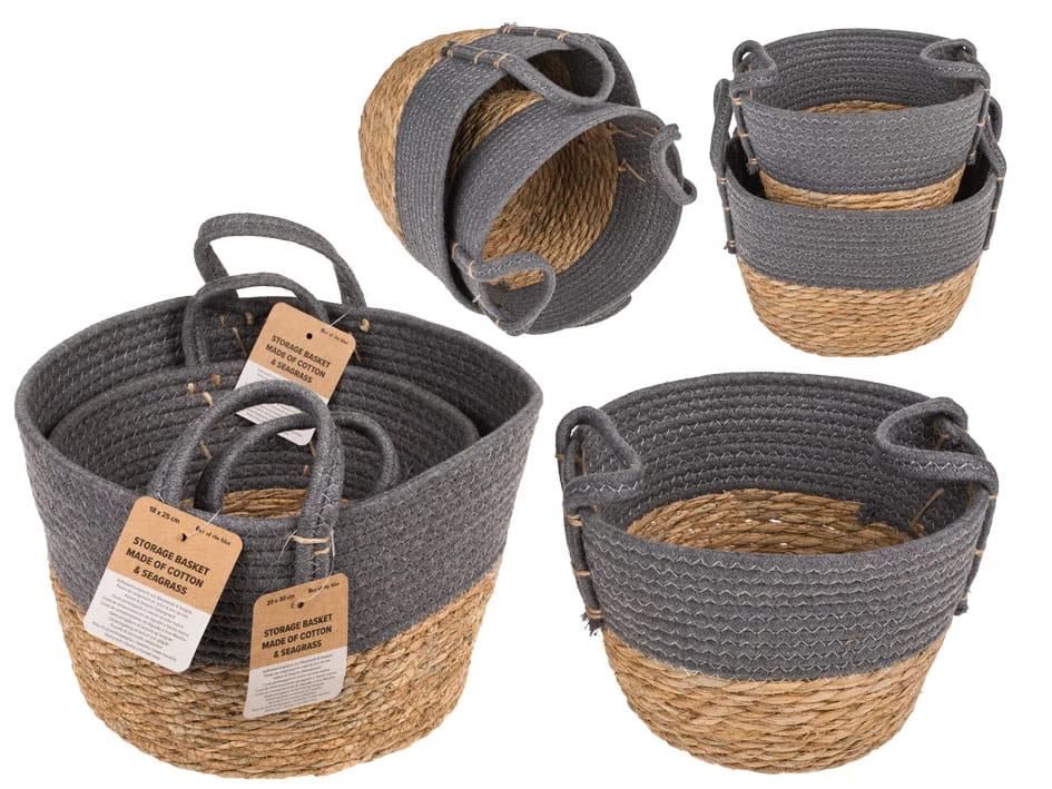 Kosze z trawy morskiej plecione 2 szt - beż szary