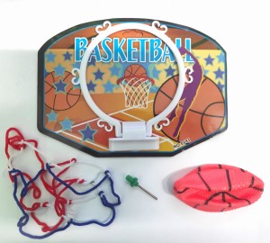 - w skład wchodzą: tablica z koszem, siatka do kosza, mini piłka, igła do pompowania piłki