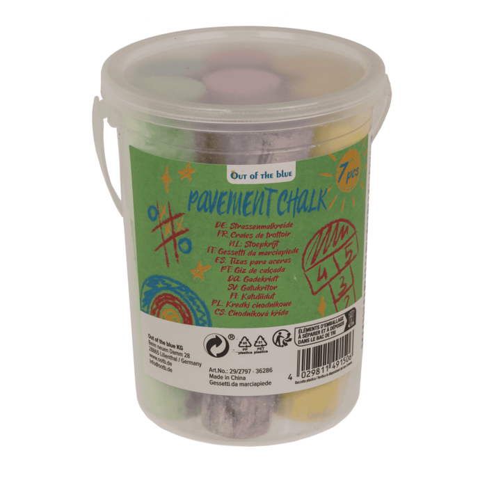 Zestaw 7 marmurkowych kred chodnikowych w wiaderku. Grube, trwałe, idealne dla dzieci do rysowania na dworze. Kreatywna zabawa na świeżym powietrzu.