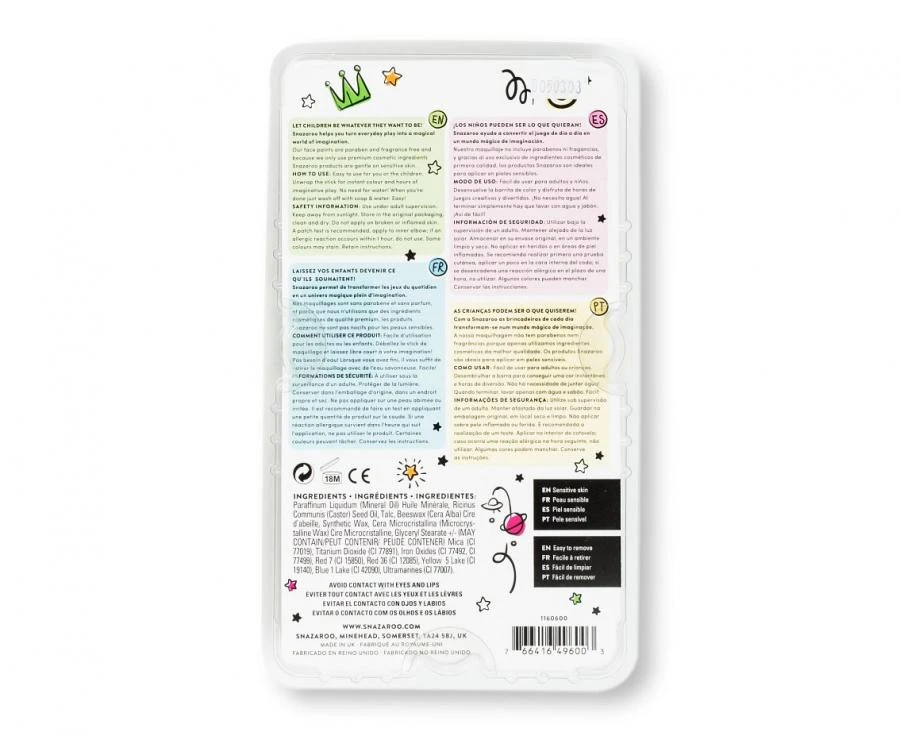 Twórz kreatywne i efektowne wzory na twarzy i ciele dzięki Zestawowi 6 Kredek do Malowania Twarzy Snazaroo. Sześć intensywnych kolorów pozwala na tworzenie różnorodnych makijaży i dekoracji, idealnych na karnawał, bale przebierańców, festiwale czy przyjęcia tematyczne. Kredki są bezpieczne dla skóry, łatwe w aplikacji i delikatne, dzięki czemu sprawdzą się zarówno dla dzieci, jak i dorosłych.