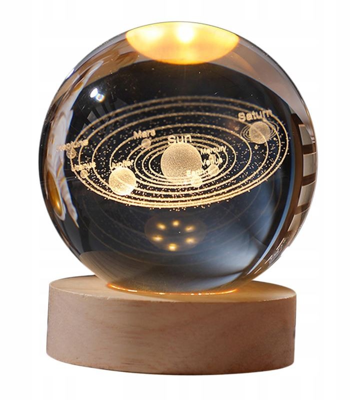 Kryształowa kula LED z Układem Słonecznym - dekoracyjna lampka 3D