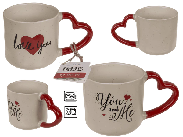 Wykonany z trwałej kamionki, jest solidny, wygodny w użyciu i przyjemny w dotyku. Uchwyt w formie serca nie tylko dobrze leży w dłoni, ale też nadaje kubkowi wyjątkowego charakteru. To drobny, ale znaczący prezent – na Walentynki jak również bez okazji.