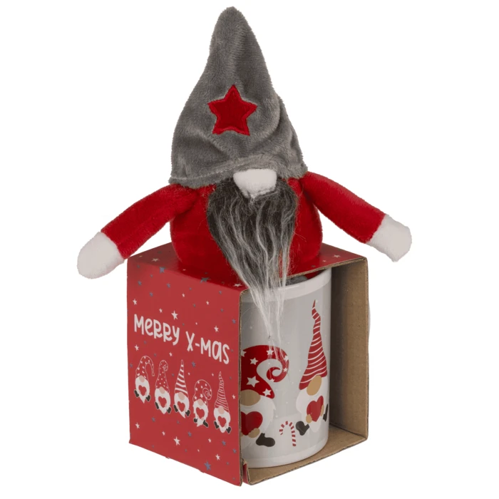 Świąteczny zestaw kubek 350 ml + pluszowy krasnal. Gotowy prezent na Mikołajki, Boże Narodzenie lub drobny upominek dla bliskich.