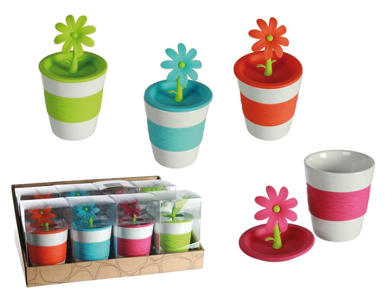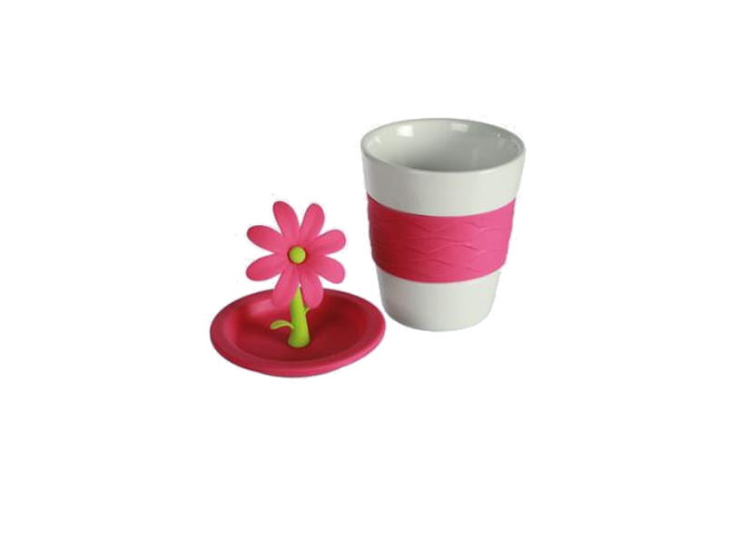 Ceramiczny kubek posiadający specjalną silikonową obejmę oraz zatyczkę, co sprawia, że zaparzony napój szybko nie wystygnie.