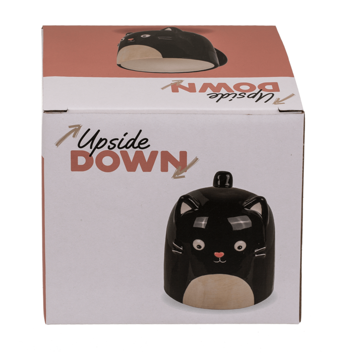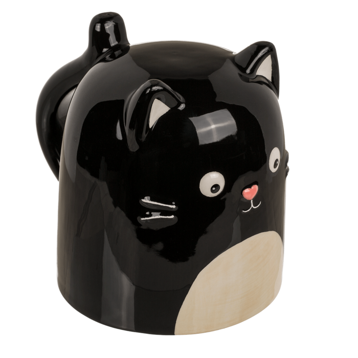 Ceramiczny kubek z odwróconą głową - czarny kot. Hit szczególnie na jesienne i zimowe wieczory, które dzięki ciepłym napojom upłyną bardzo przyjemnie. Doskonały również na prezent dla bliskiej osoby. Zapakowany w kartonik.