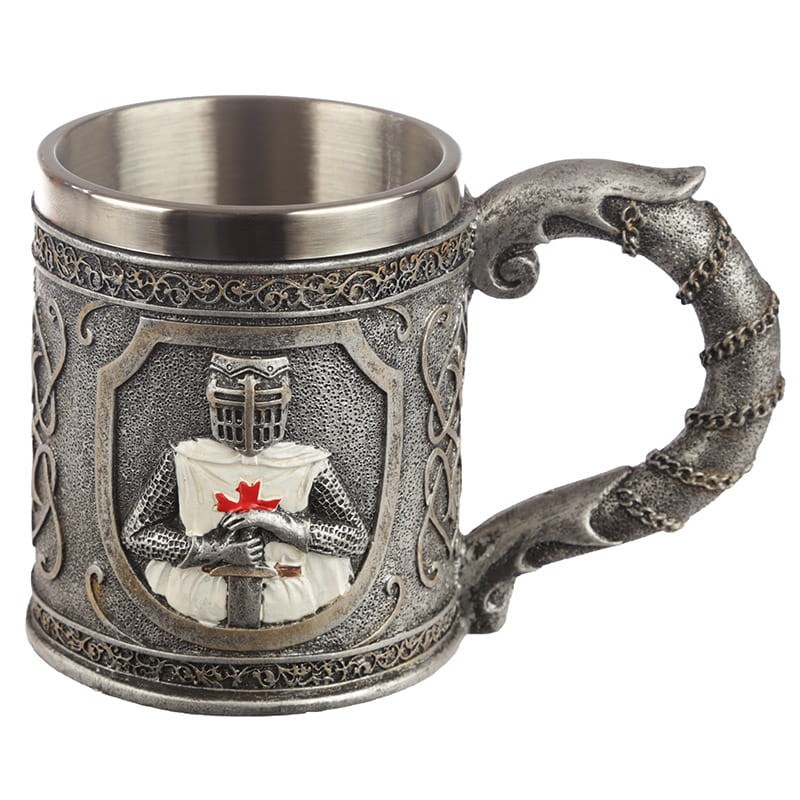 Kufel ozdobny z grafiką przedstawiającą rycerza. Środek kubka wykonany ze stali nierdzewnej. Idealny kufel dla wszystkich fanów rycerskich klimatów. Świetnie wygląda również jako ozdoba w kredensie lub na półce.
