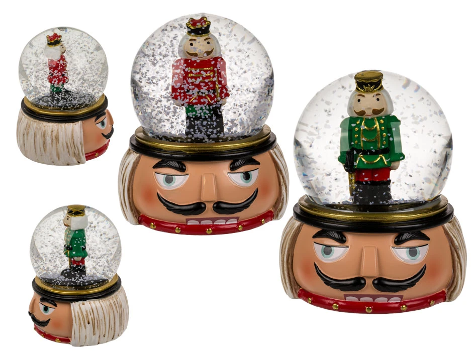 Urocza kula śnieżna z Dziadkiem do Orzechów w czerwonym lub zielonym mundurze. Po potrząśnięciu wiruje srebrzysty śnieg. Idealna świąteczna dekoracja lub prezent pełen magii.
