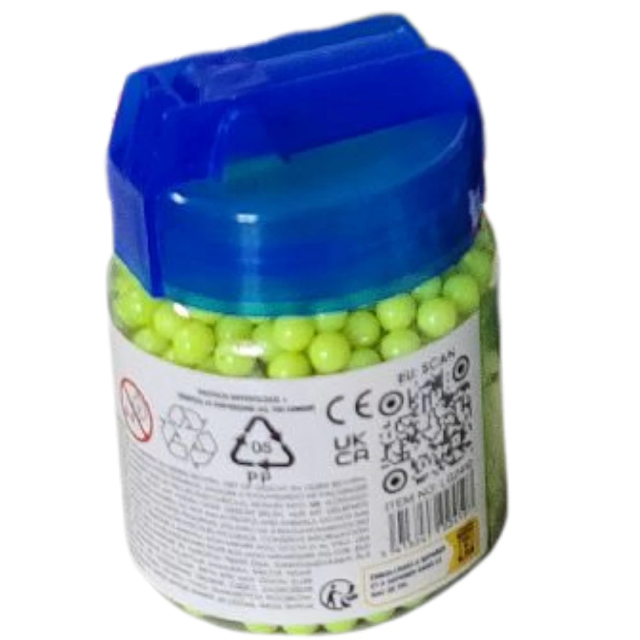 Kulki zapakowane są w poręczny, zamykany pojemnik o wymiarach 6 × 6 × 9 cm, który bez trudu mieści się w plecaku, kieszeni czy torbie. To praktyczne rozwiązanie dla każdego małego strzelca – zawsze gotowego do akcji.
