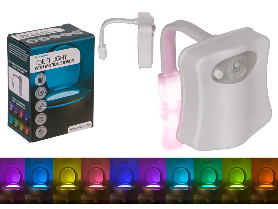 Lampka do toalety z czujnikiem ruchu. Gadżet świetnie sprawdzi się m.in. w domu z małymi dziećmi, które obawiają się uczęszczać do toalety nocą lub dopiero uczą się z niej korzystać. Wchodząc do toalety nie trzeba zapalać światła. Lampka w postaci zawieszki z elastycznym uchwytem jest łatwa w montażu i estetyczna. Czujnik ruchu sprawia, że zapala się tylko wtedy kiedy ktoś jest w pobliżu.