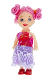 Laleczka Lily ma ok 10 cm wysokości, kolorowe włosy związane w kucyk i elegancką, kolorową sukienkę. Ma ruchomą głowę oraz ręce. Zapakowana jest w opakowanie foliowe, idealnie nadaje się na prezent dla dziewczynki. Dostępne różne wzory, wysyłamy jako mix.