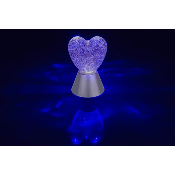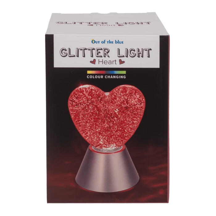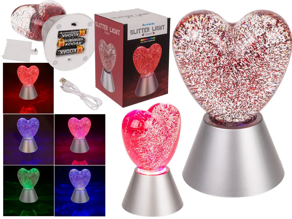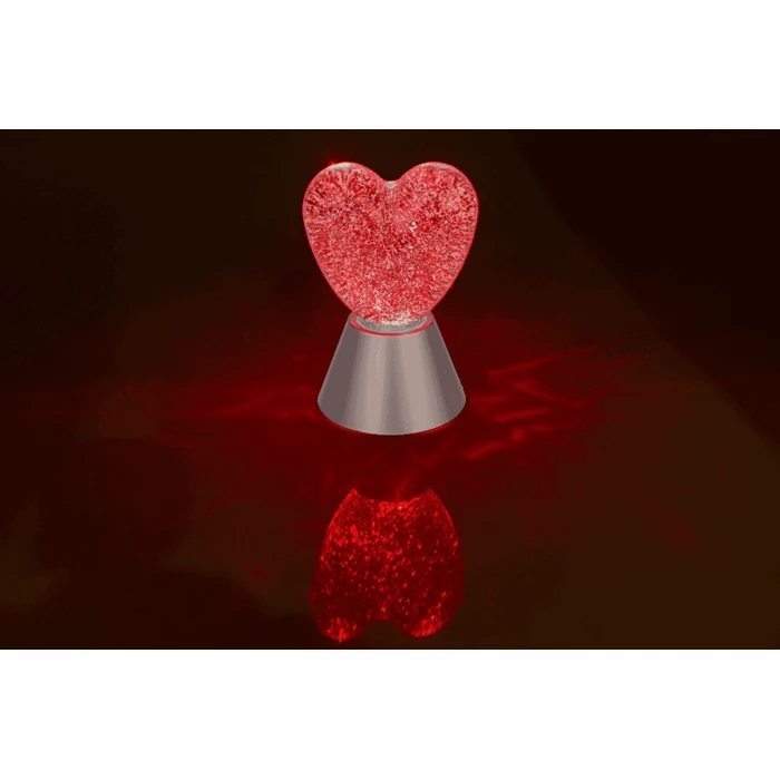 Romantyczna lampa z czerwonym brokatem w kształcie serca. Idealna na prezent – tworzy wyjątkowy nastrój w sypialni lub podczas wieczoru we dwoje.