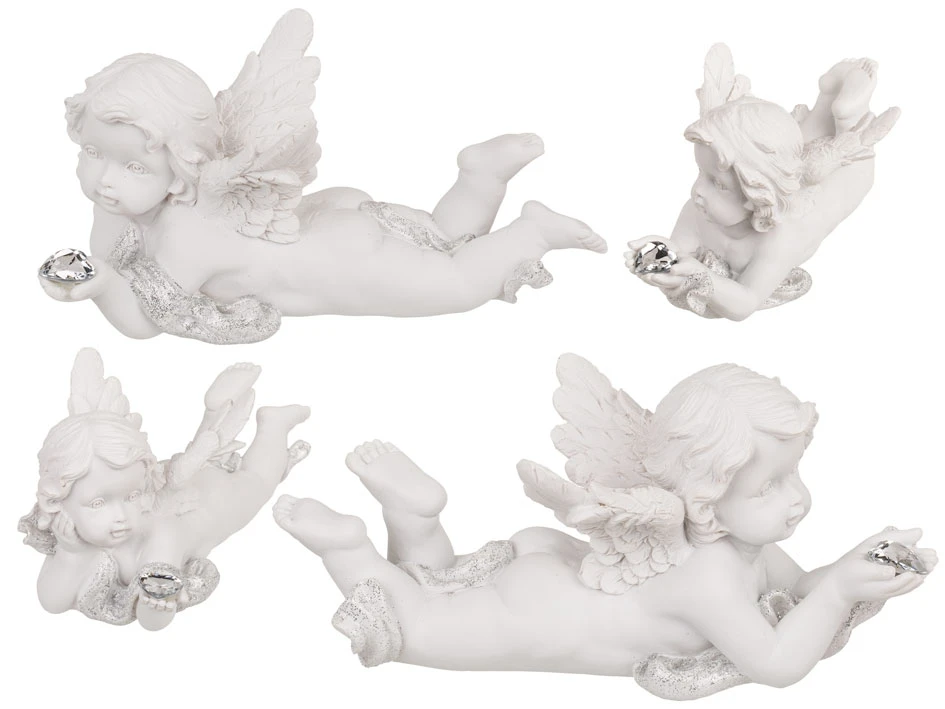• Figurka leżącego aniołka trzymającego kryształowe serce