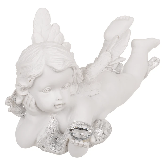 Leżący Aniołek z Kryształowym Sercem – Subtelna Ozdoba Pełna Spokoju