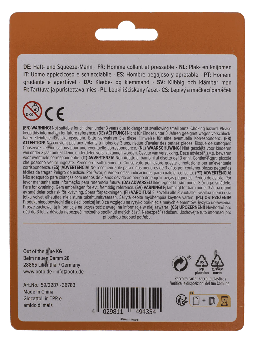 Ludzik antystresowy z przyssawkami - śmieszny gniotek na szybę 9cm