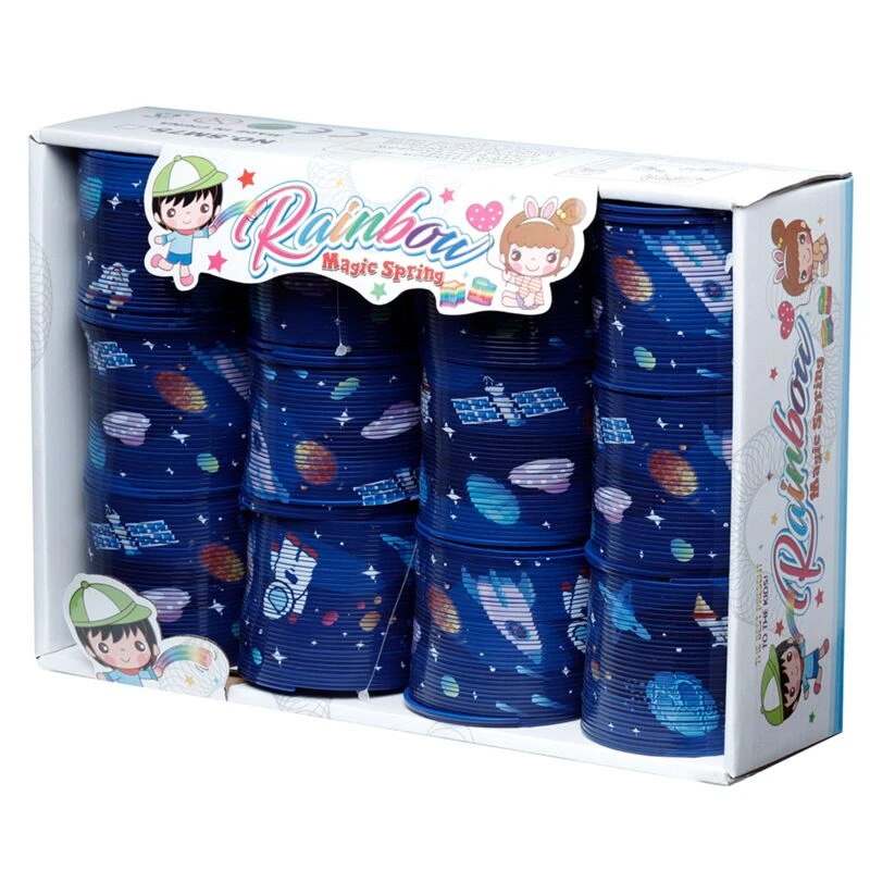 Wyrusz w międzygalaktyczną podróż z magiczną sprężyną inspirowaną kosmosem! To klasyczna zabawka, która od lat dostarcza mnóstwo radości – teraz w wyjątkowej wersji z motywami planet, gwiazd i rakiet.