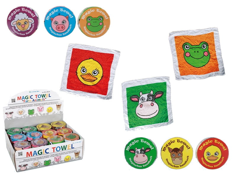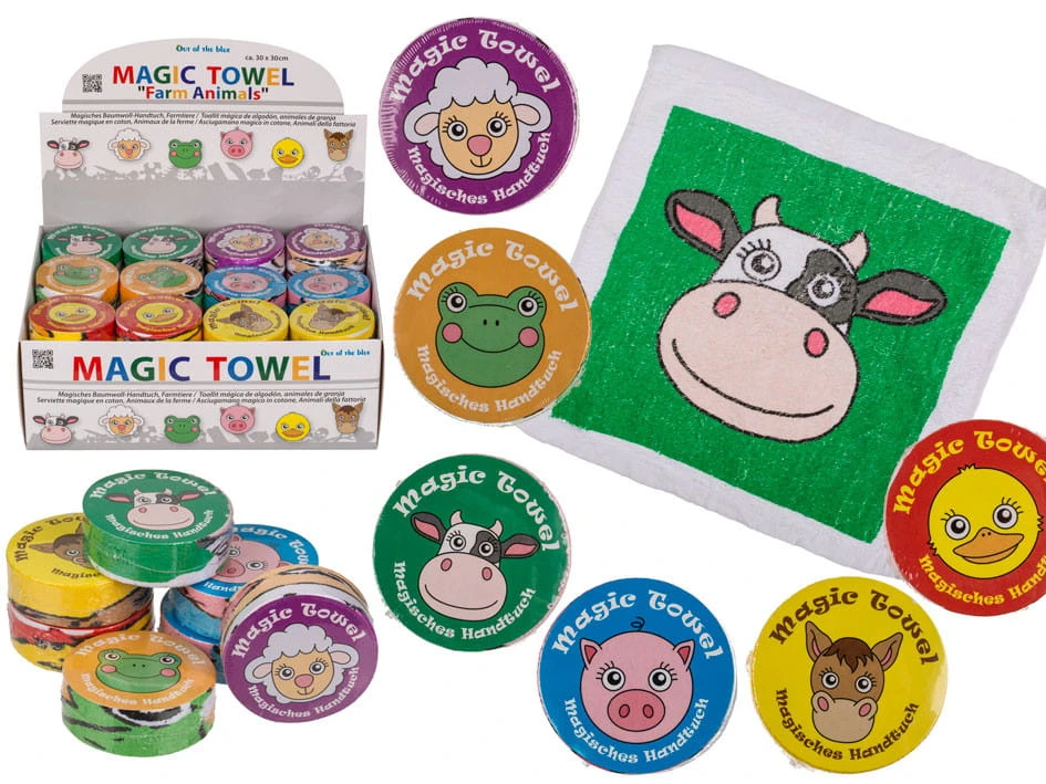 Jest to bardzo silnie sprasowany ręcznik, który po wrzuceniu do wody bardzo szybko pęcznieje i staje się duży - około 30 x 30 cm. Idealny do rąk. Ręcznieczek dostępny w różnych wzorach graficznych ze zwierzętami farmerskimi. Wysyłamy jako mix wzorów.