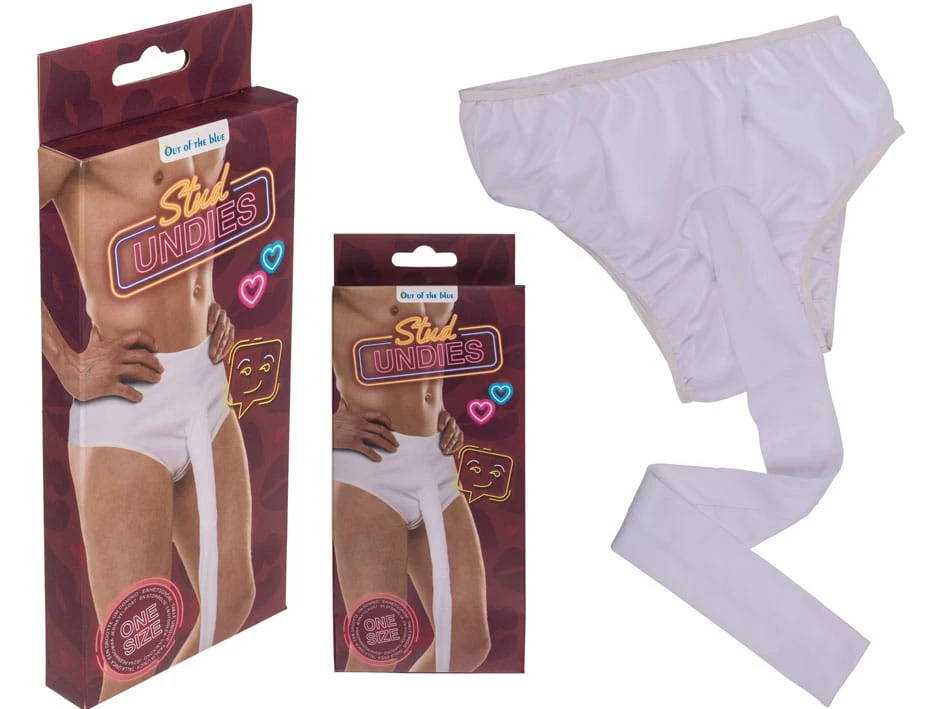 Zabawne majtki z długą kieszenią dla facetów z dystansem. Idealne na wieczór kawalerski, osiemnastkę lub prezent z przymrużeniem oka!