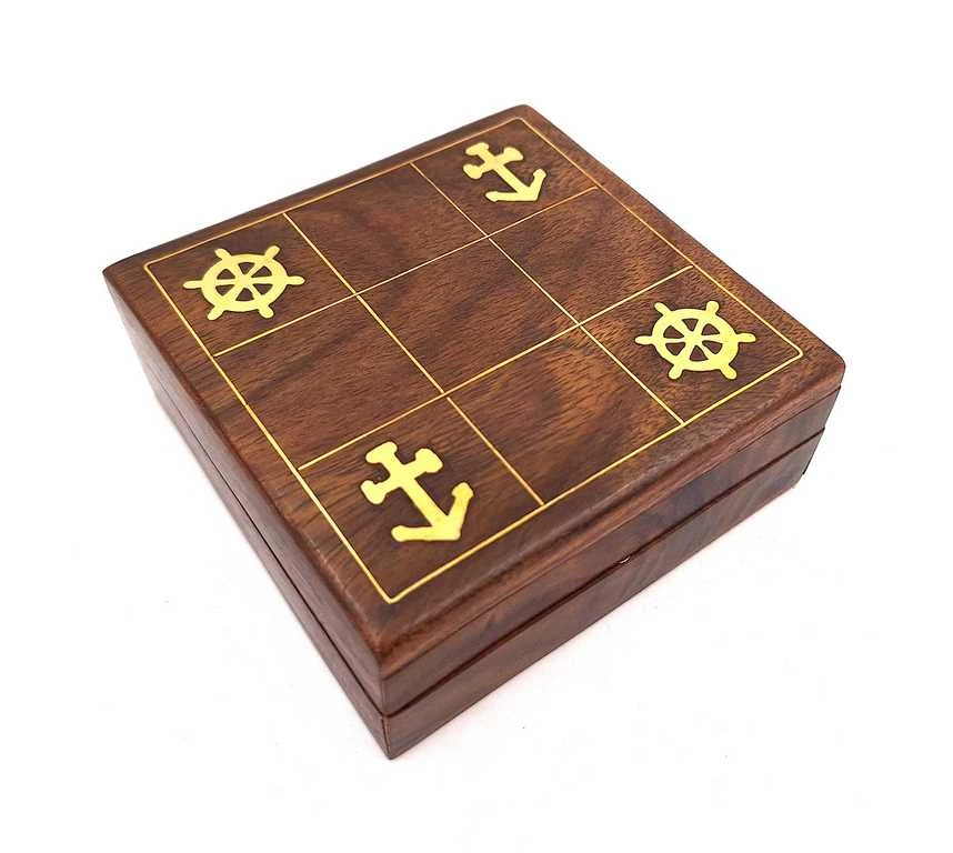 Przenieś się na pokład żaglowca i poczuj morską bryzę z wyjątkową, marynistyczną wersją klasycznej gry kółko i krzyżyk! Zamiast tradycyjnych symboli, gra oferuje drewniane koła sterowe i kotwice, ozdobione mosiężnymi detalami. To nie tylko gra, ale również elegancki dodatek, który zachwyci każdego fana żeglarstwa i stylu retro.