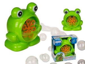 Urządzenie do robienia baniek mydlanych w kształcie żabki. Cudowna maszynka do zabawy dla dzieci. Dorośli w końcu będą mogli odpocząć, a bańki zrobi Żabka. Zasilana na 3 baterie AA (brak w zestawie).