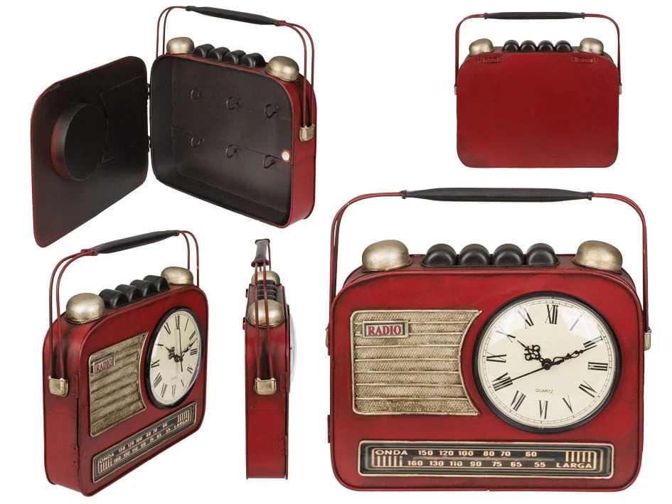 Metalowa skrzynka na klucze z zegarem - radio