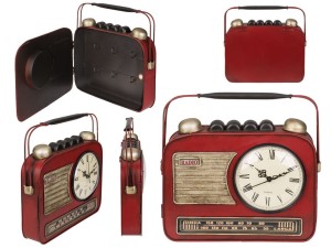 Metalowa skrzynka - radio to schowek na klucze z sześcioma haczykami i ozdobnym uchwytem do otwierania. Idealny gadżet dla zafrasowanej pani domu czy roztargnionej głowy rodziny! Teraz nie dość, że klucze będą lądować w bezpiecznym miejscu, to nie będzie problemu z przypomnieniem, gdzie one się znajdują. Metalowa szafka niby zwyczajna, a jednak nie - równocześnie jest stylowym zegarem. Stylowo postarzana - widoczne przetarcia. Najładniej wkomponuje się we wnętrza w stylu industrialnym, loft oraz vintage. Super prezent dla domu.