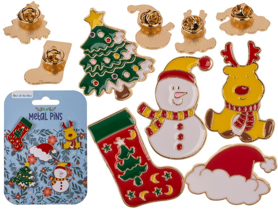 Metalowy Pin Świąteczny Zestaw 5 Sztuk Przypinki na Święta Boże Narodzenie