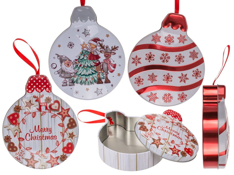 Metalowy Pojemnik na Słodki Prezent Bombka Świąteczna na słodycze