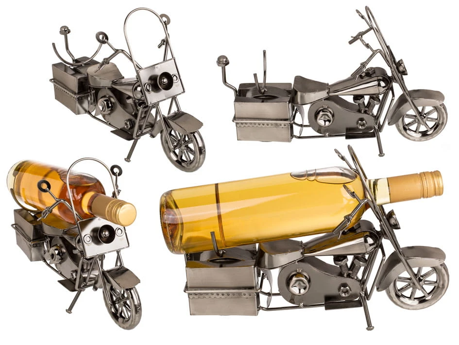 Często kupujesz wino w prezencie i nie wiesz jak je zapakować?! Jeśli kupujesz je akurat na prezent dla miłośnika motocykli to problem masz już z głowy. Każdy fan dwóch kółek będzie zachwycony takim podarunkiem. Zamiast sztampowej torebki podaruj wino w świetnym metalowym stojaku z wizerunkiem motocykla, który zawsze gotowy jest drogi. Tak zapakowane wino będzie doskonałym prezentem. Stojak stanowi również oryginalny wystrój wnętrza.